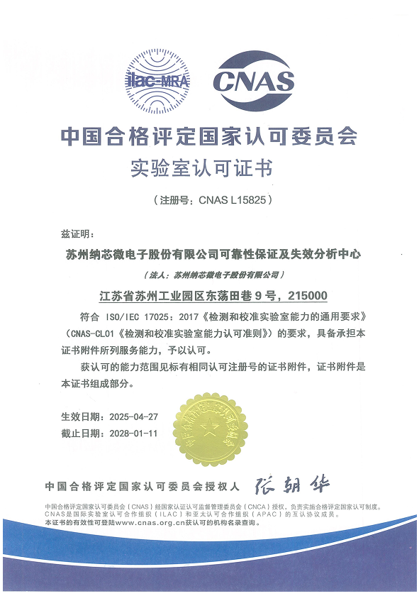 中国合格评定国家认可委员会颁发的实验室认可证书